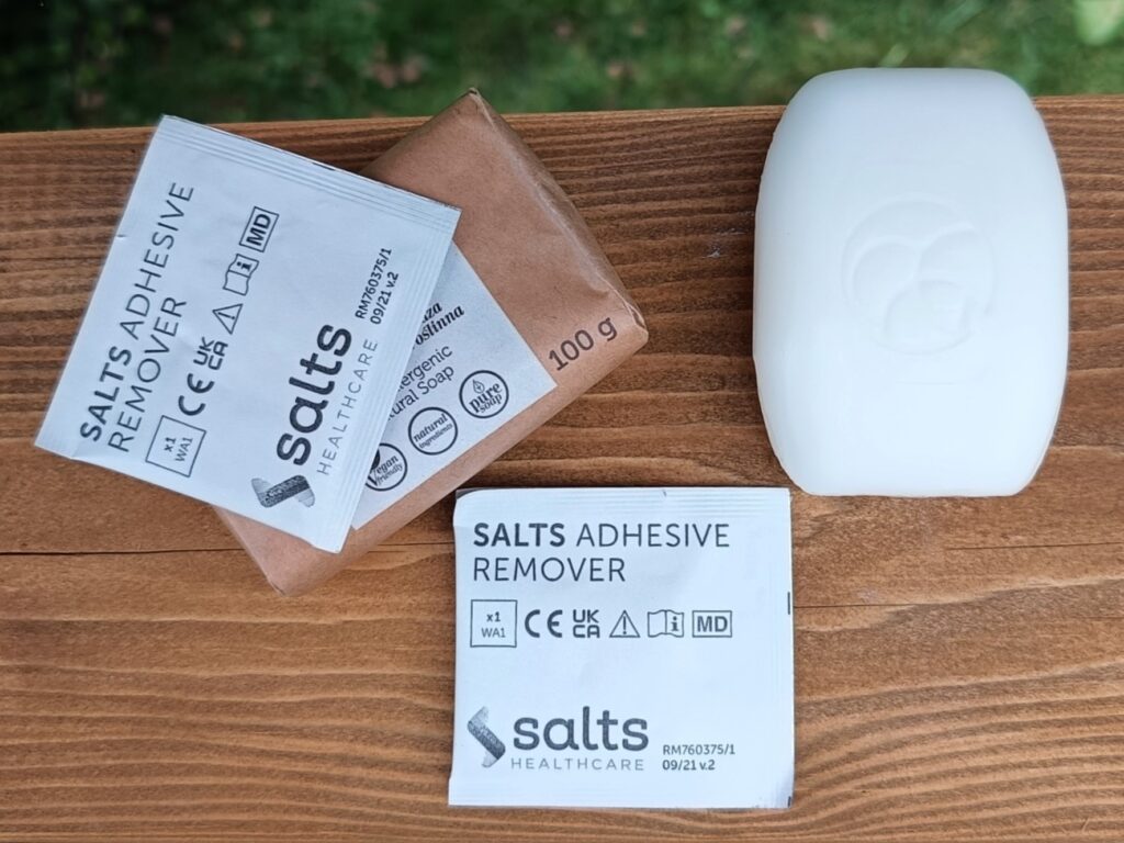 do mycia skóry wokół stomii rekomendujemy: chusteczki Salts do zgrubnego oczyszczania skóry i szare mydło do jej dokładnego umycia