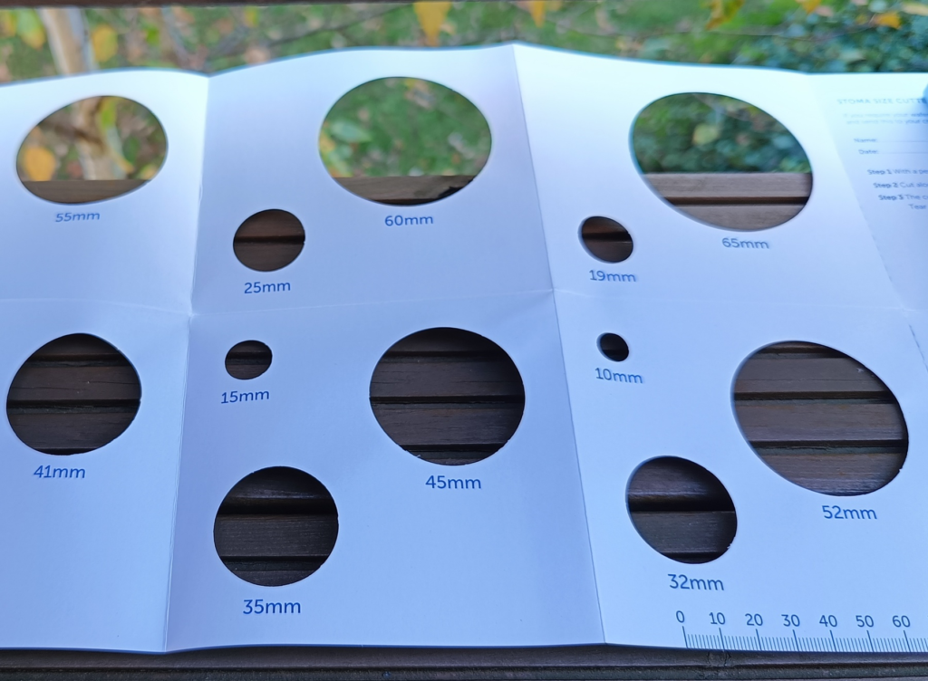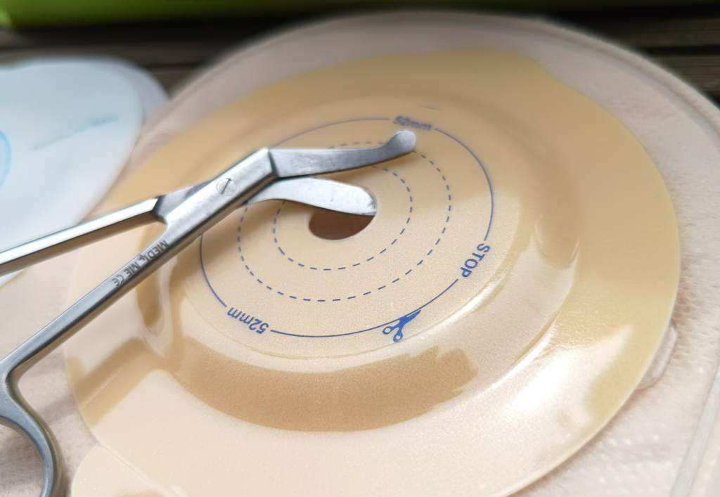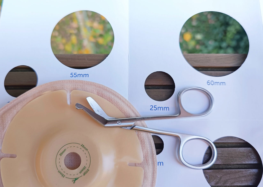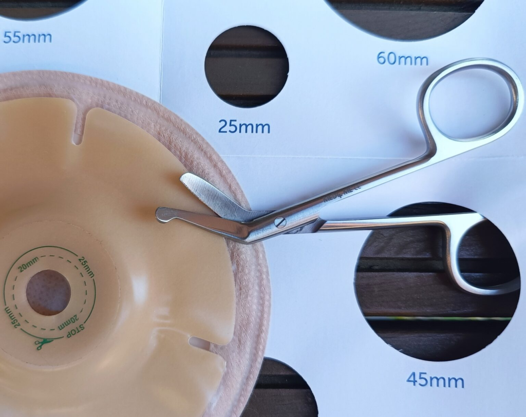 Normy mówią, że otwór w płytce powinien być większy od stomii o około 12 mm.