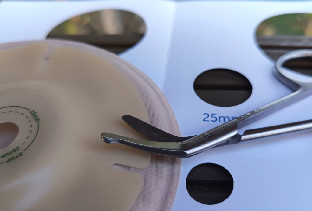 Przycinanie bez wcześniejszego sprawdzenia rozmiaru często kończy się zbyt dużym otworem a on może być przyczynkiem do dyskomfortu związanego z podciekaniem treści stomijnej wprost na odkryty fragment skóry.